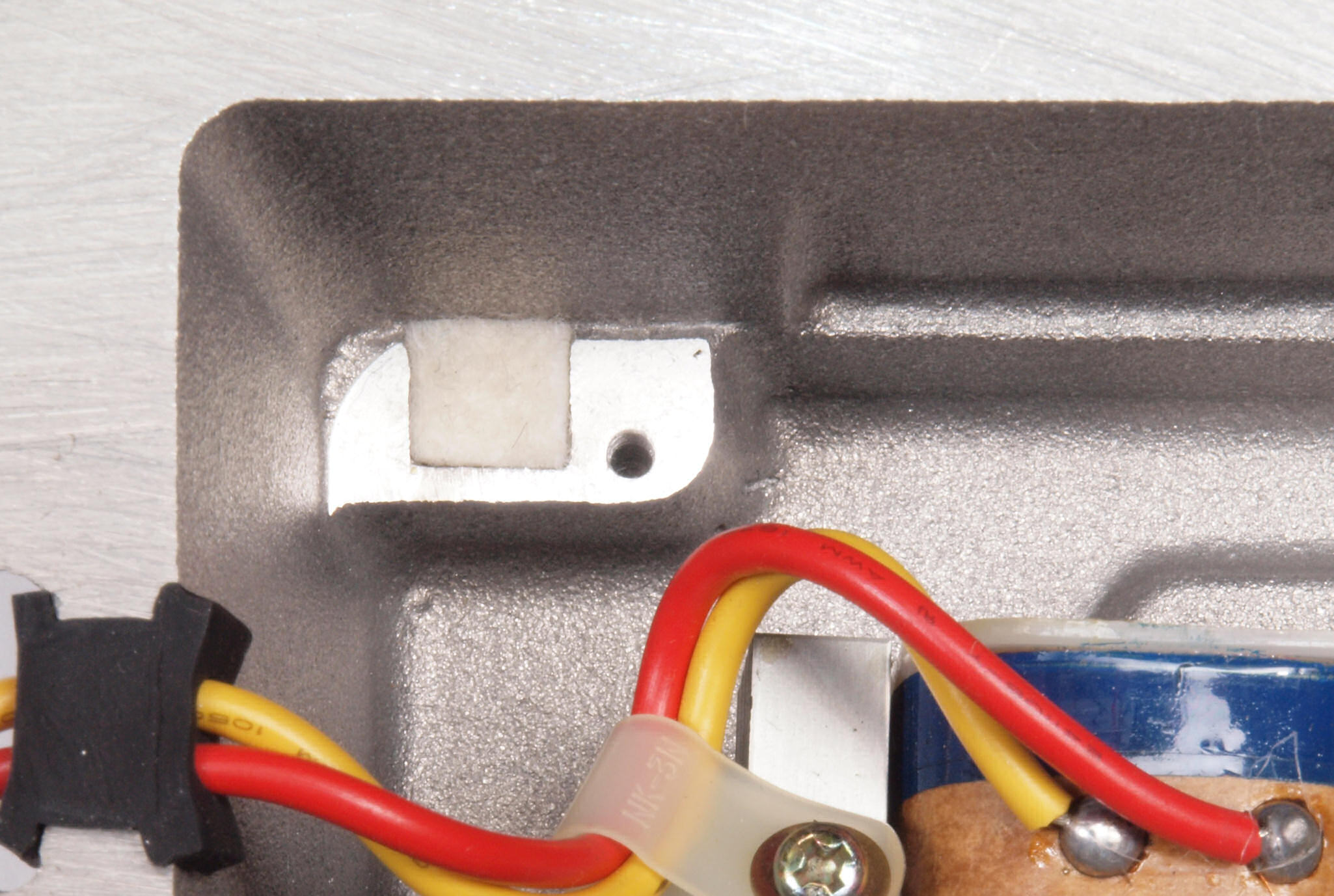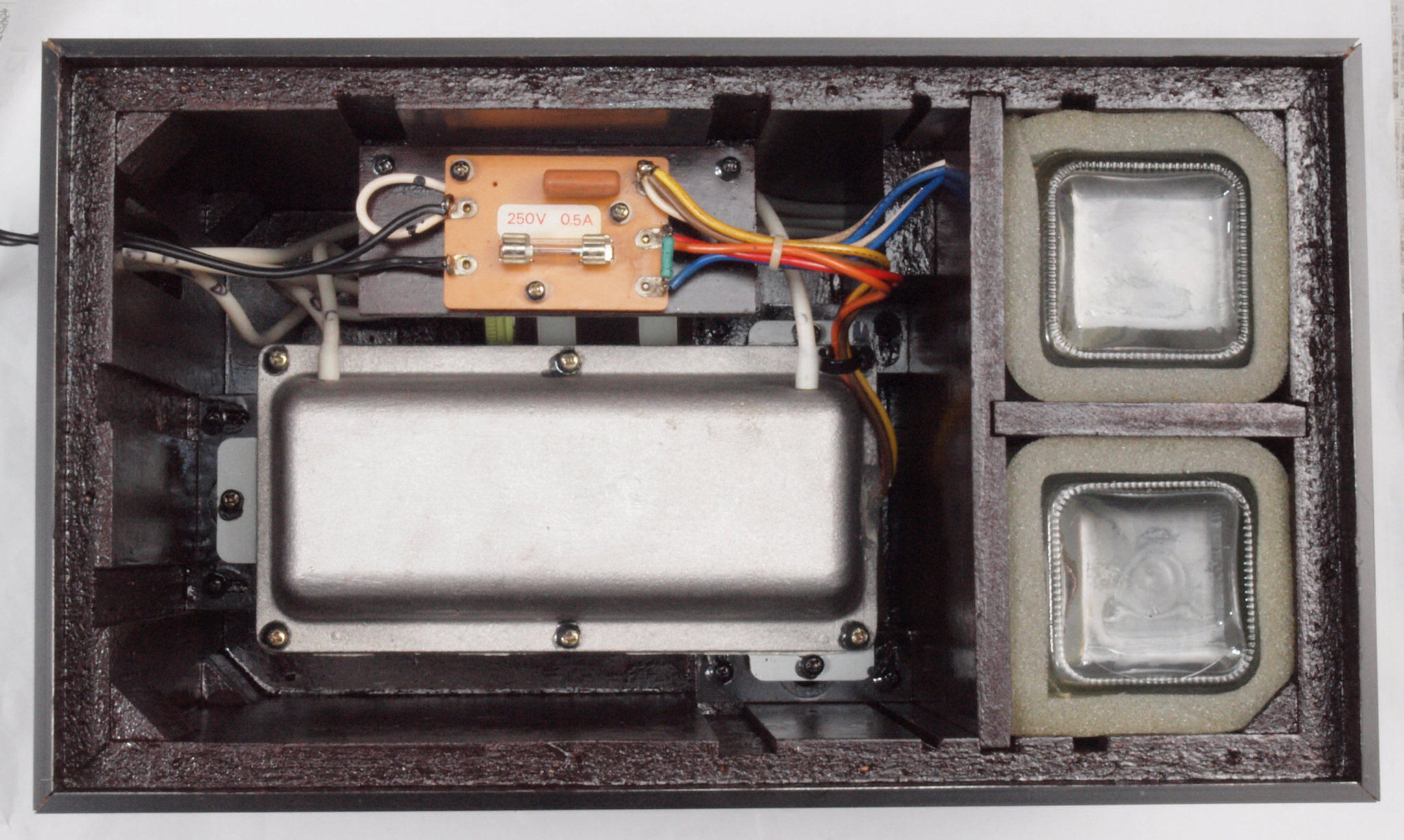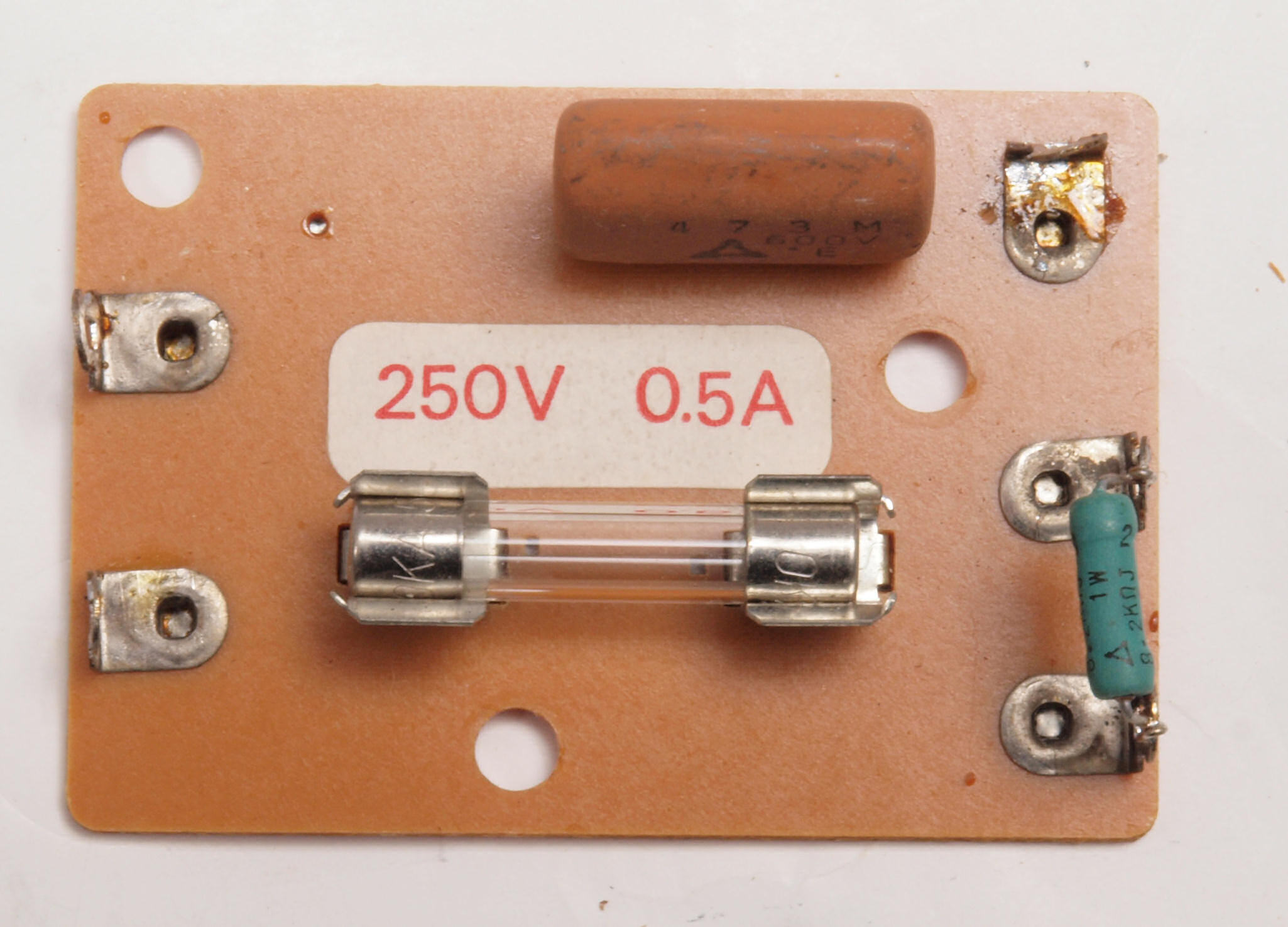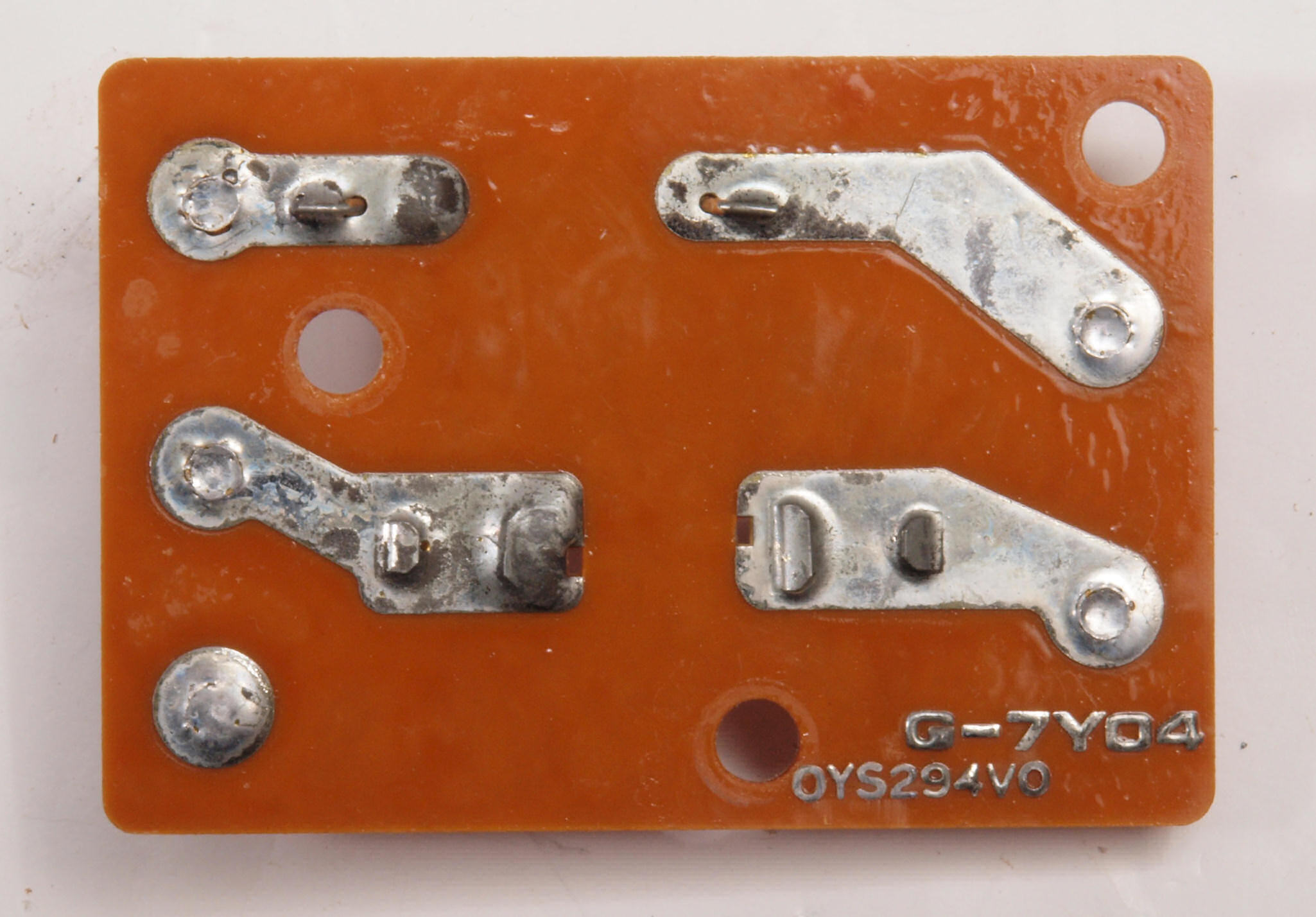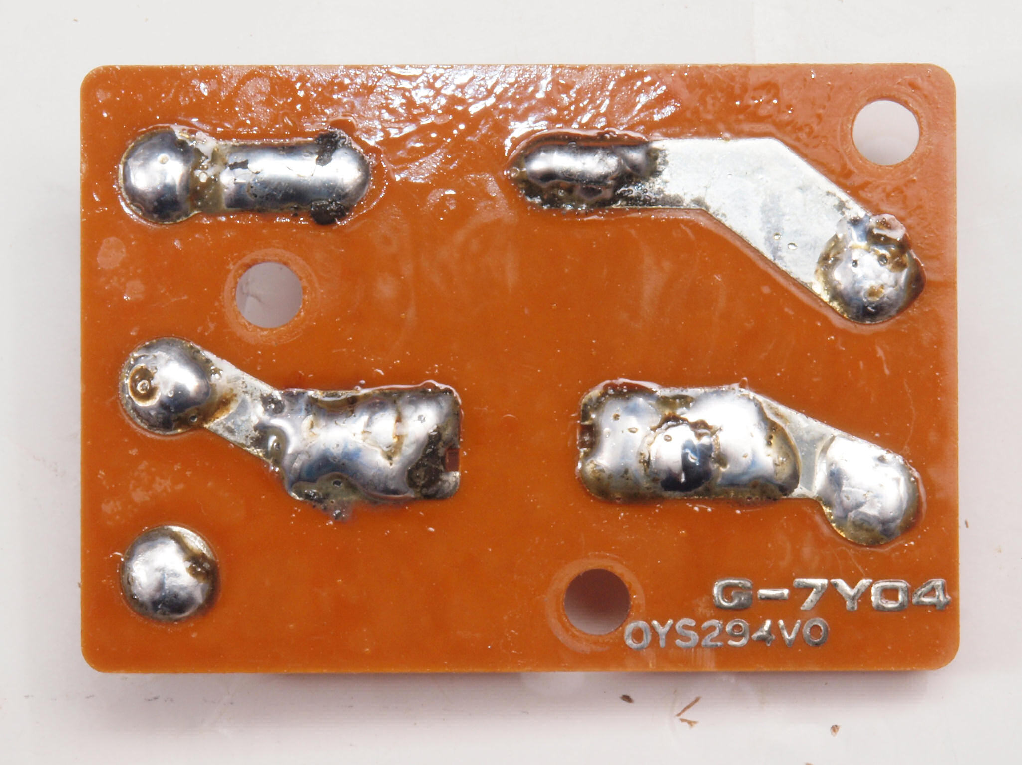 C72. 修理中 ヒューズ取付圧縮板表。 圧縮板にボンドを塗って固めている、ヒューズ取付圧縮板表。