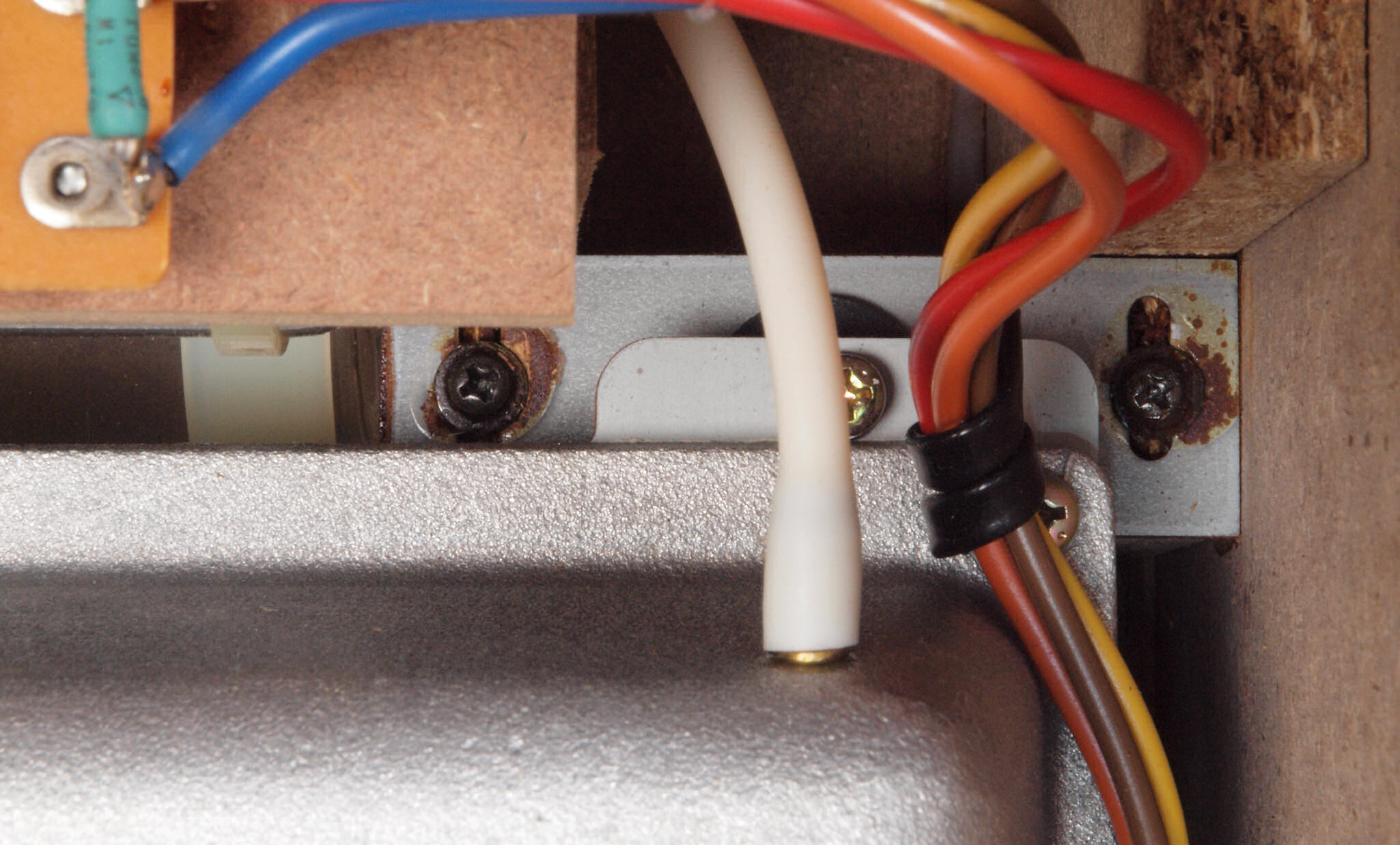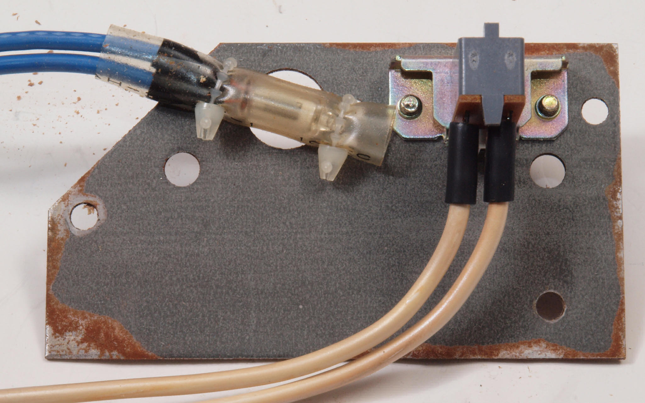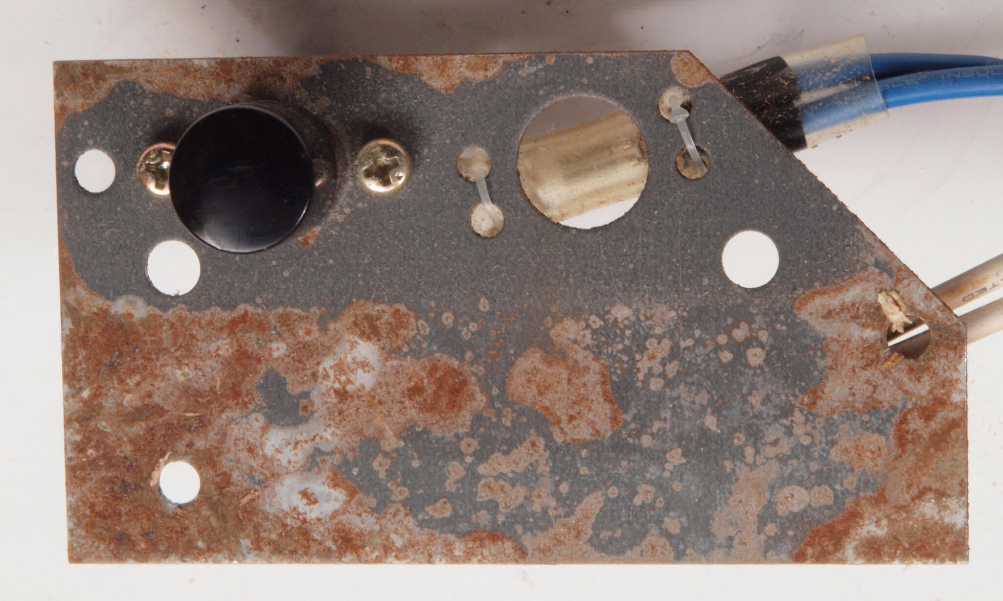 CD1. 修理(塗装)前 電源SW・LED取付金具。錆が出ている。