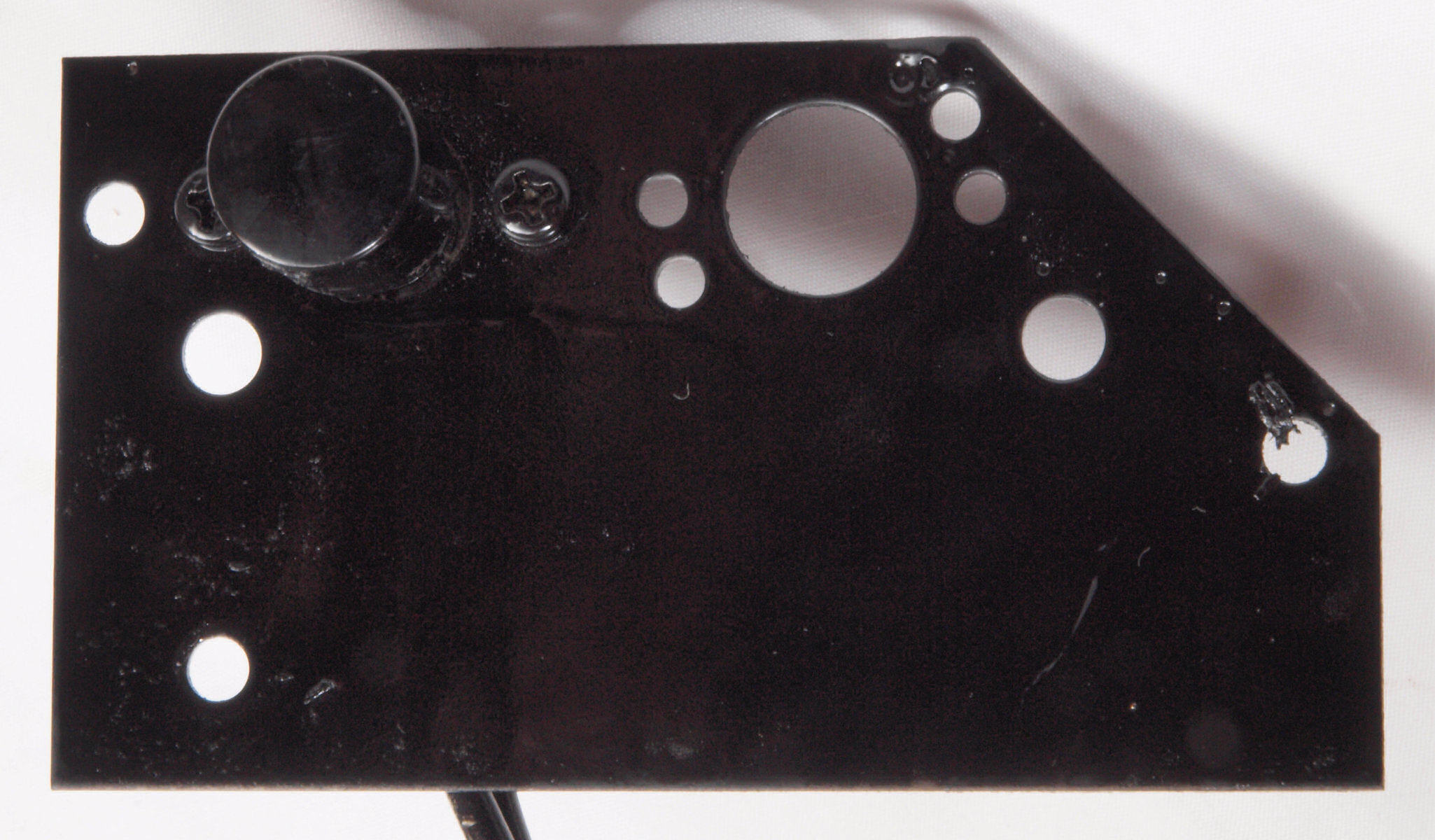 CD6. 修理(塗装)後 電源SW・LED取付金具裏。塗装する、SWのボタンが接着してあるので、取り付けたままで塗装する。