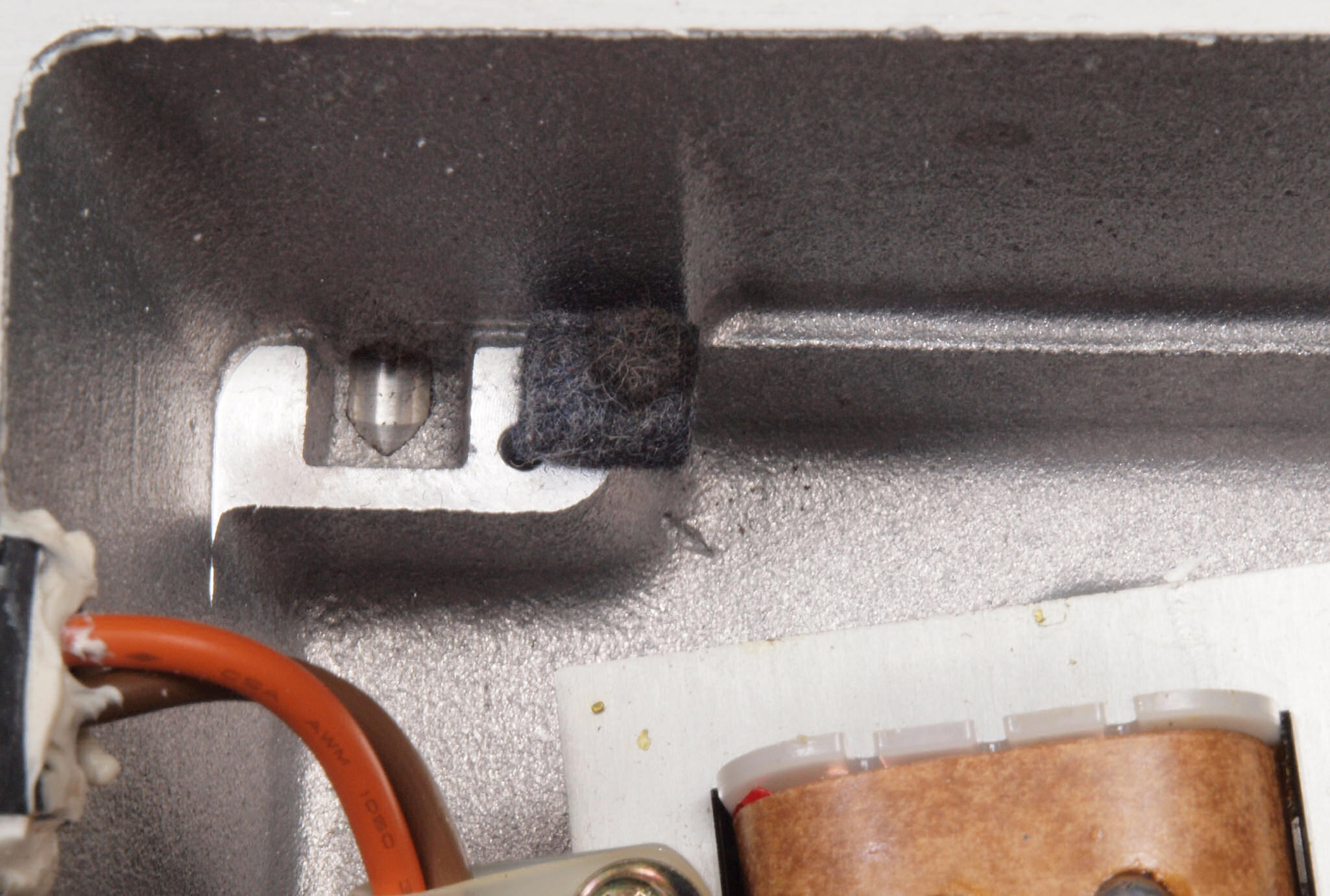 C78. 修理中 ヒューズ取付け圧縮板左横側、ボンドを染みこませる。