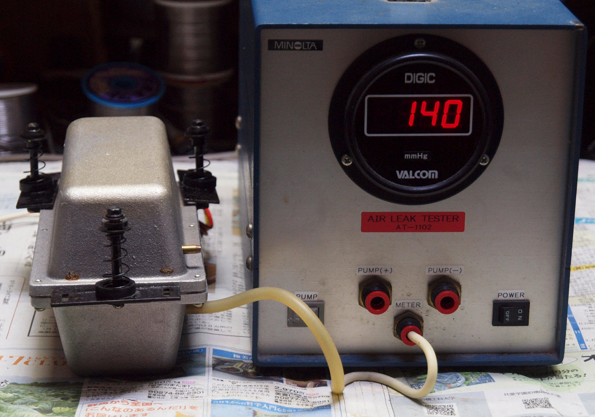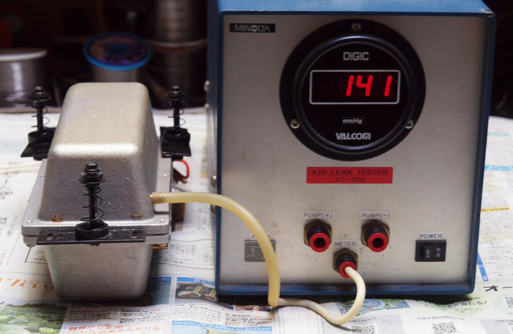 S1. 測定中  「A=吐き出し用ポンプ」の圧力測定。 低い、120〜140位欲しい。