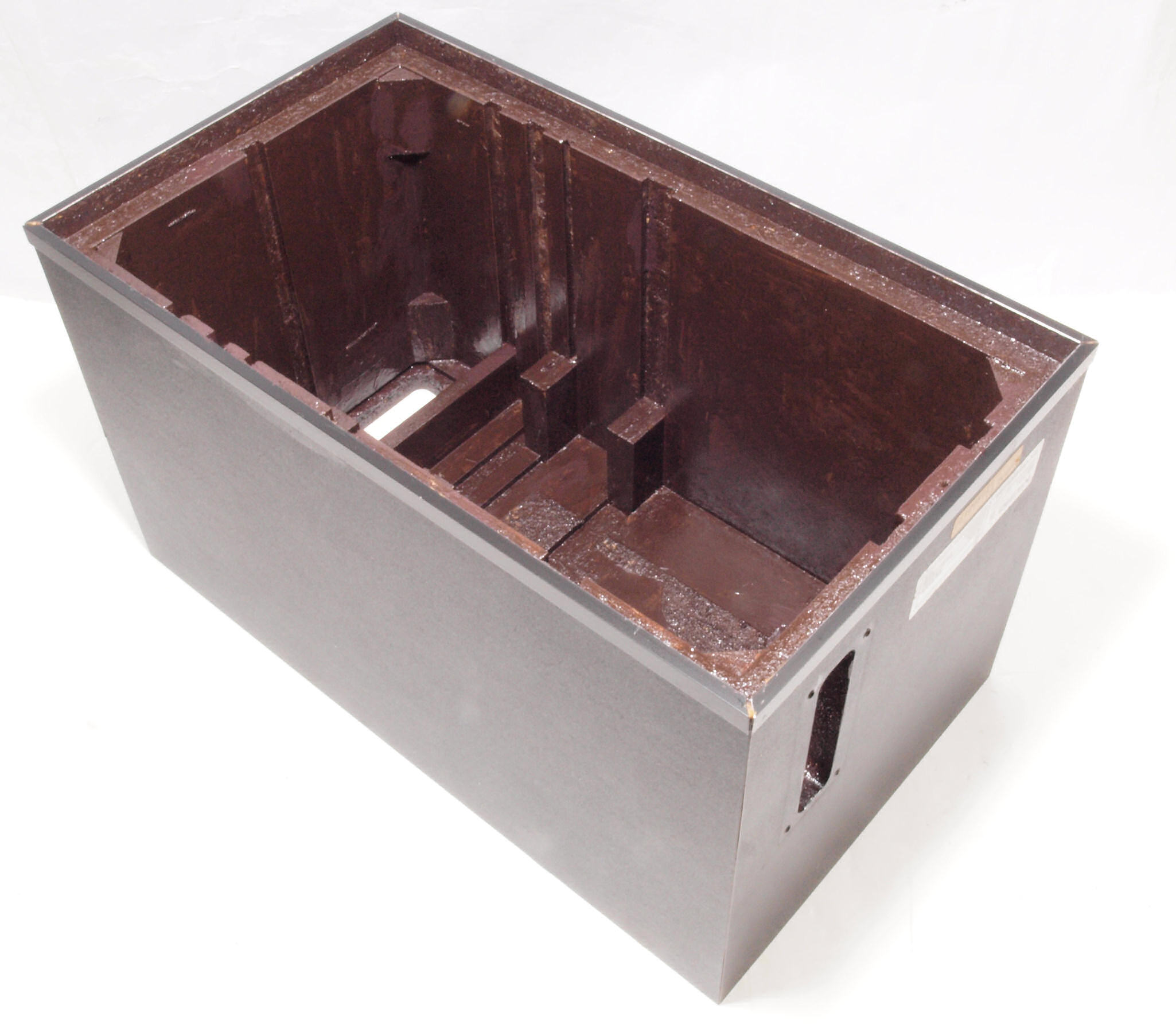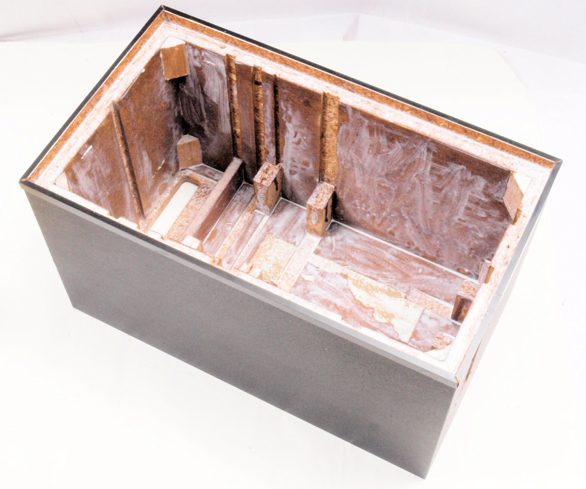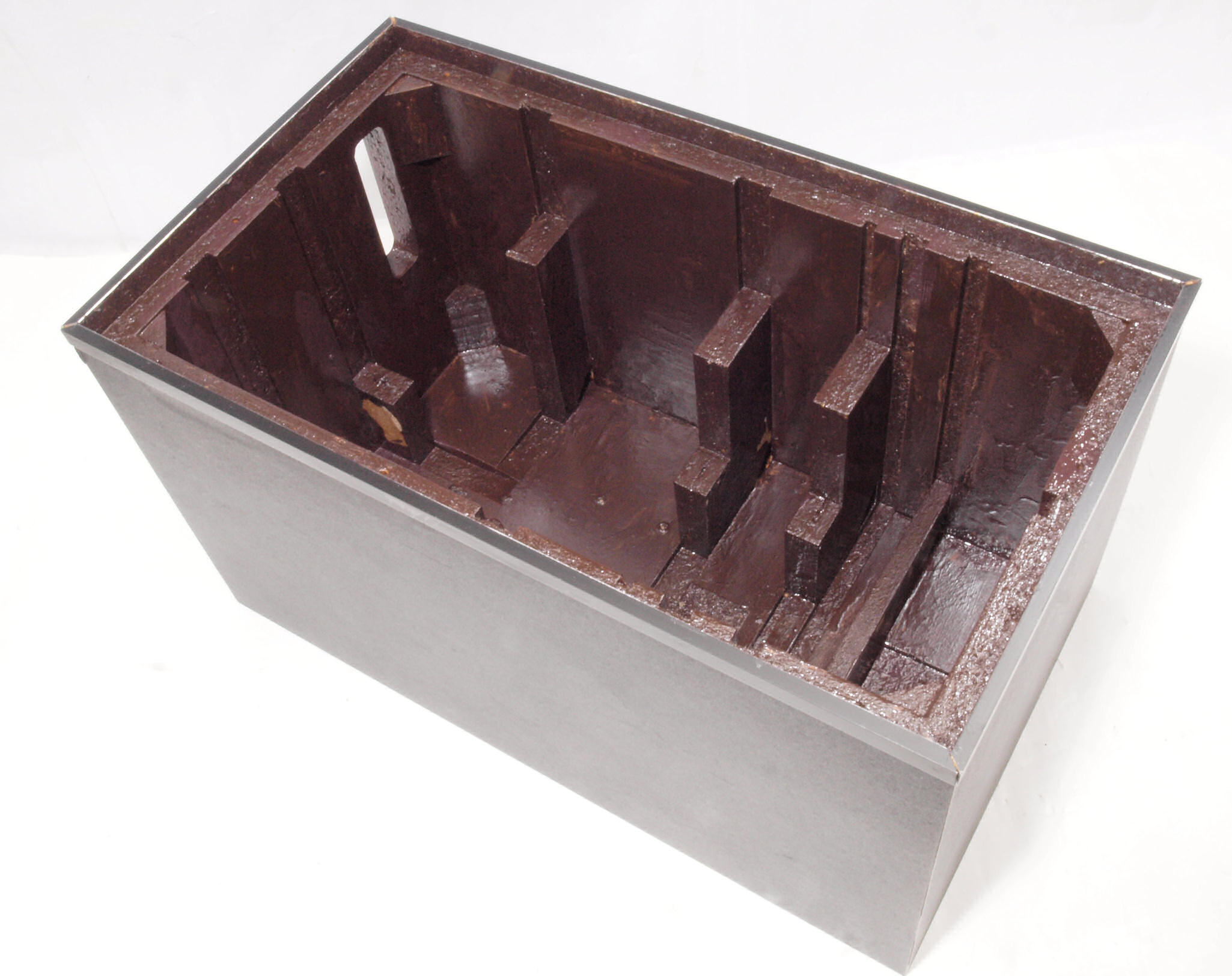 C47. 修理前 接着材が劣化した木箱、下後左から見る。