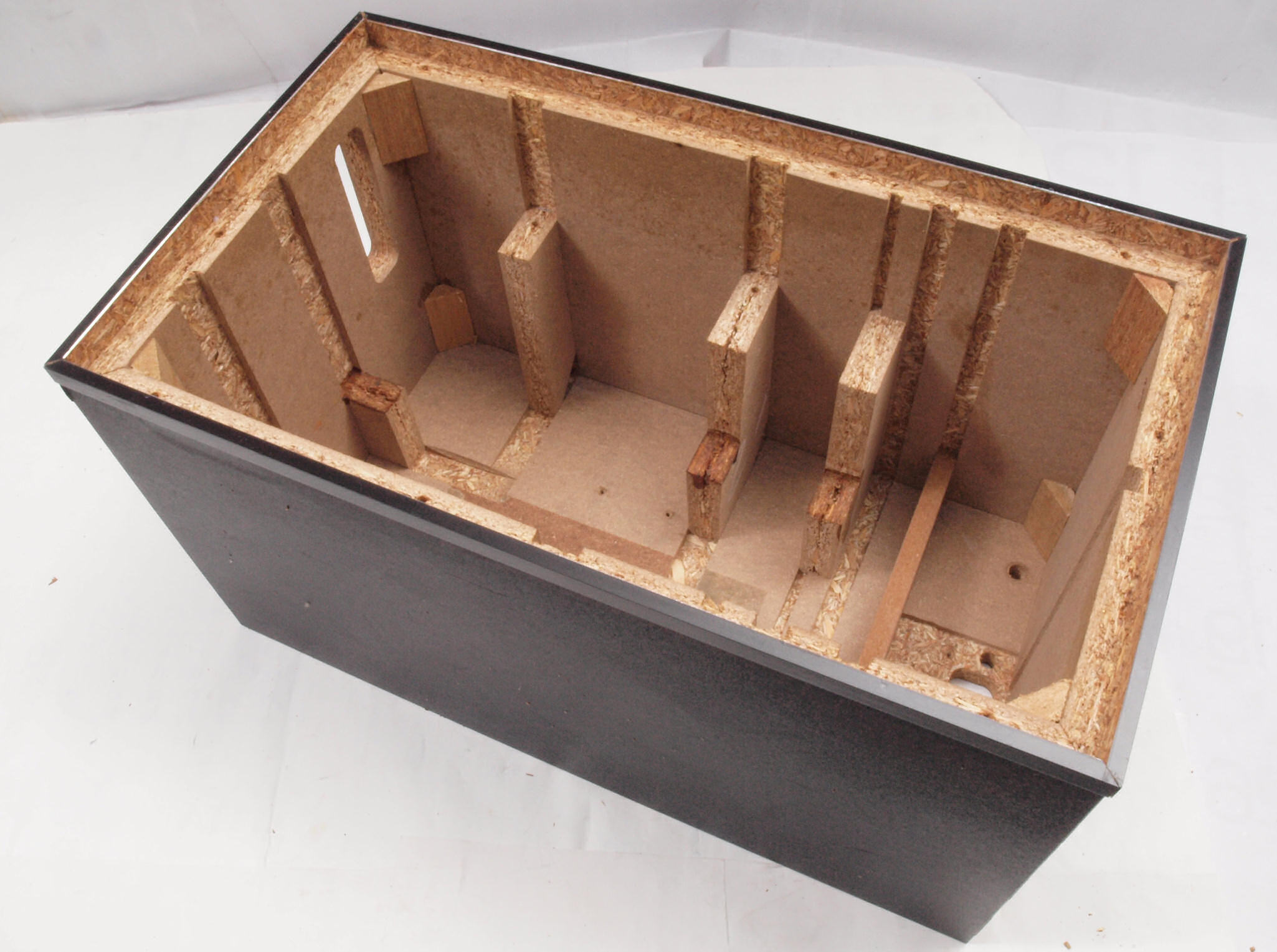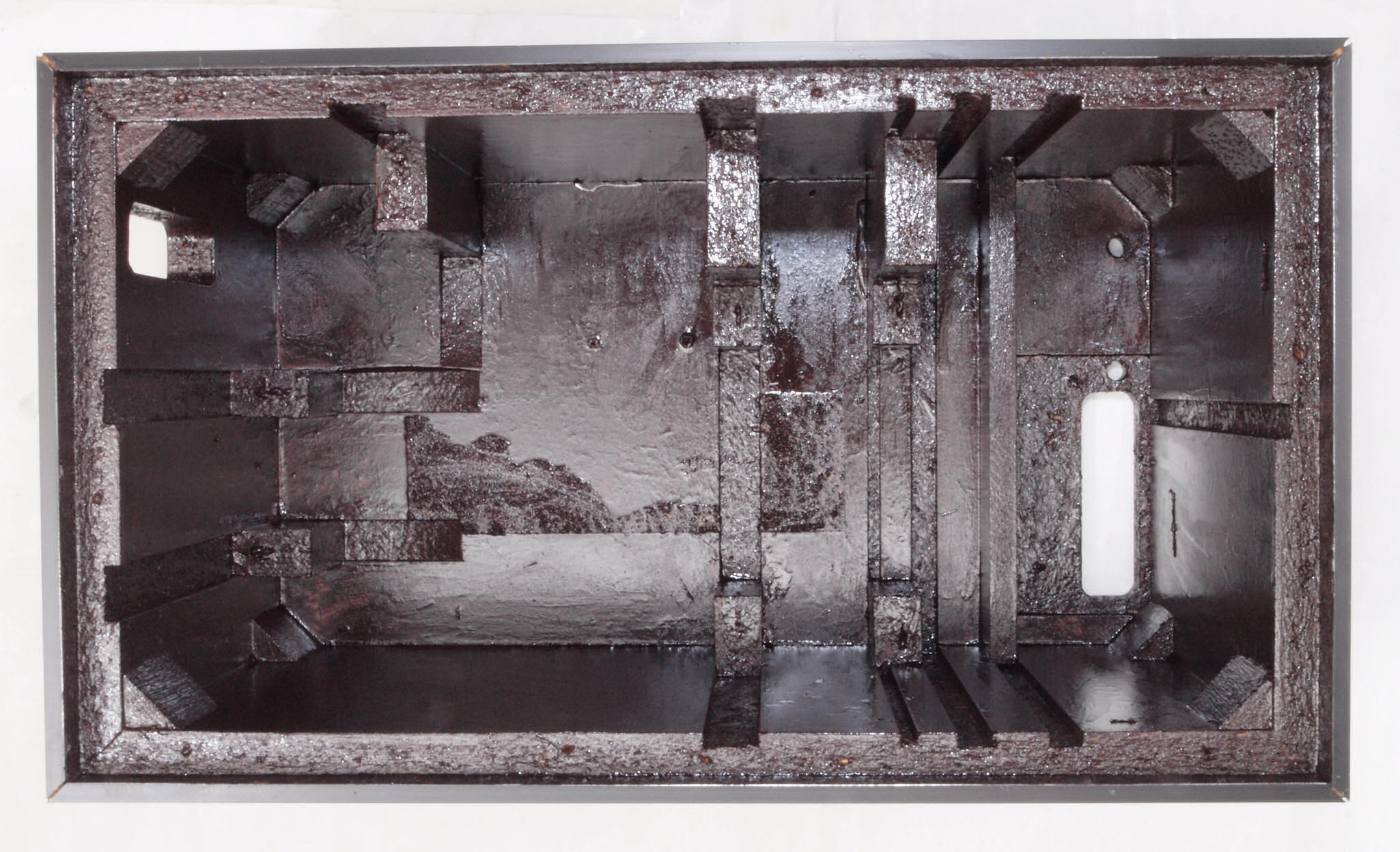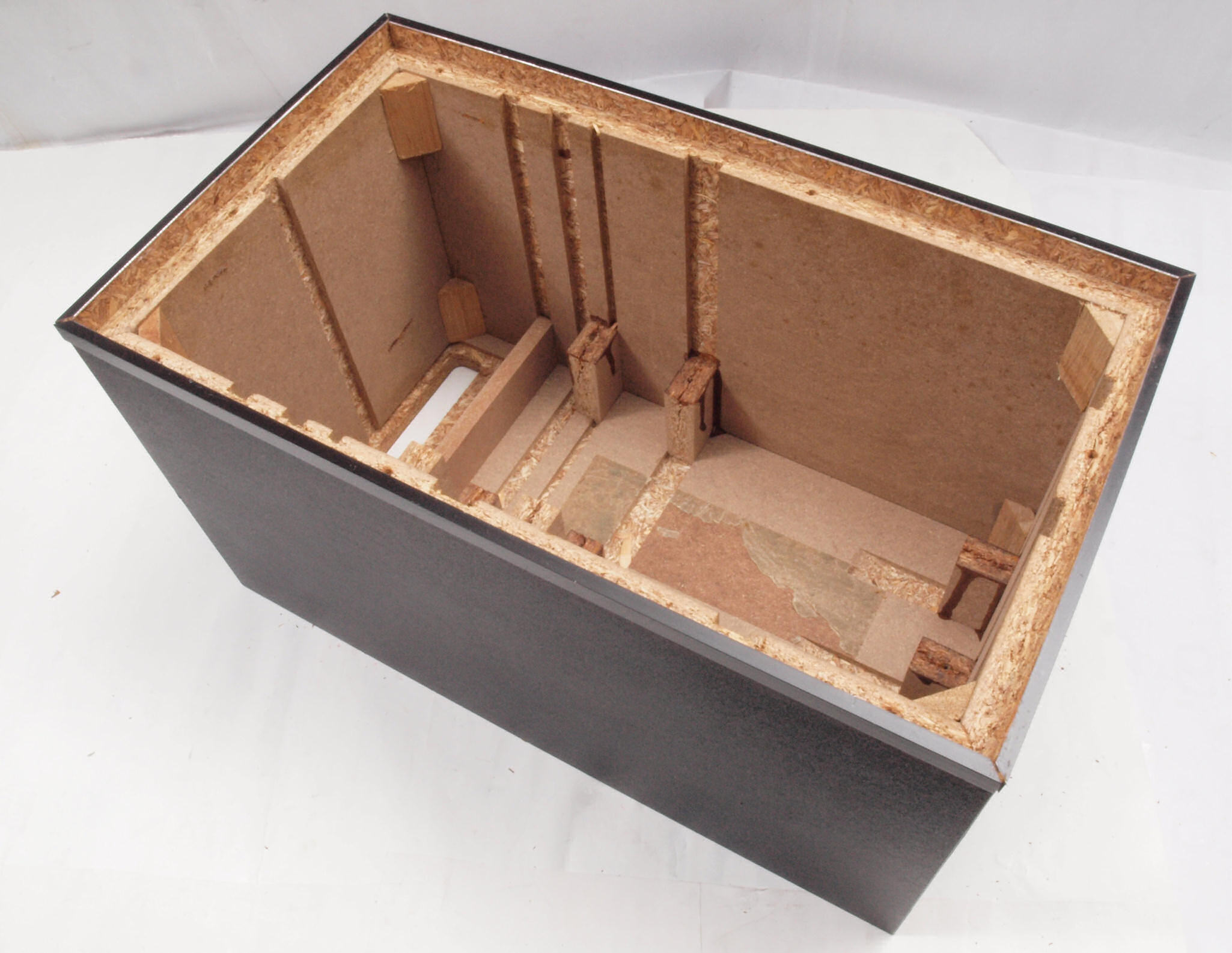 C47. 修理前 接着材が劣化した木箱、下後左から見る。
