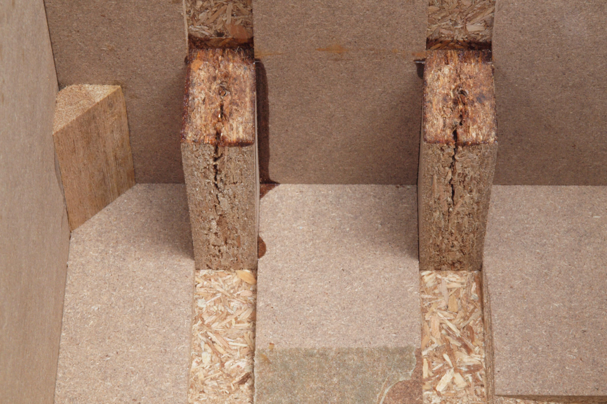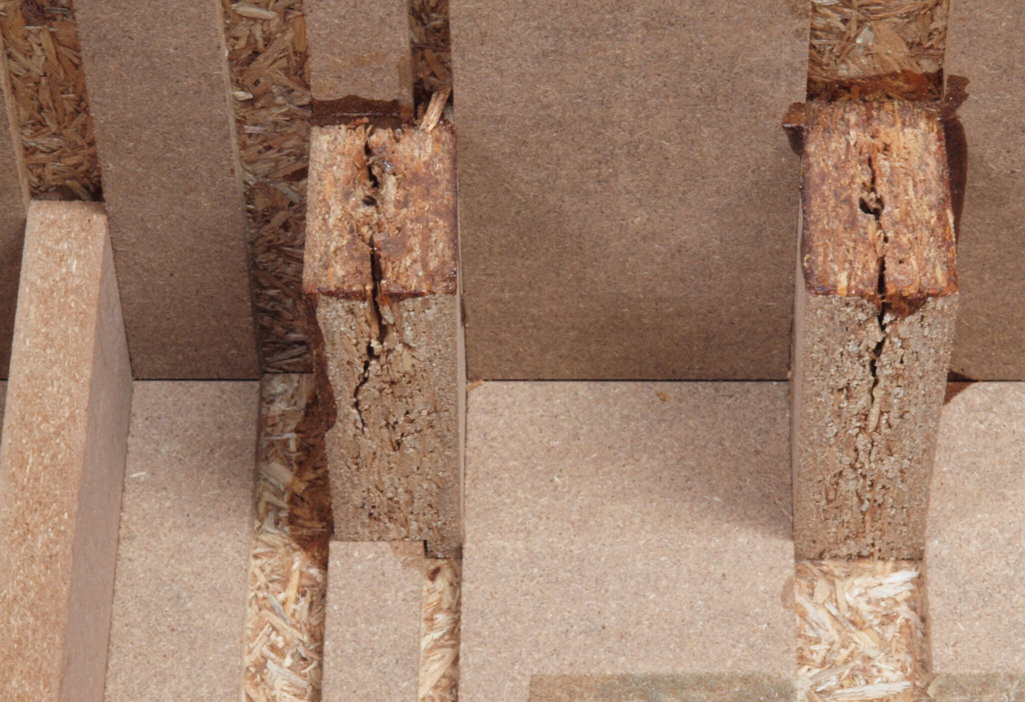 C41. 修理前 圧縮材の接着材が劣化した木箱。止めビスの所は割れが酷い。