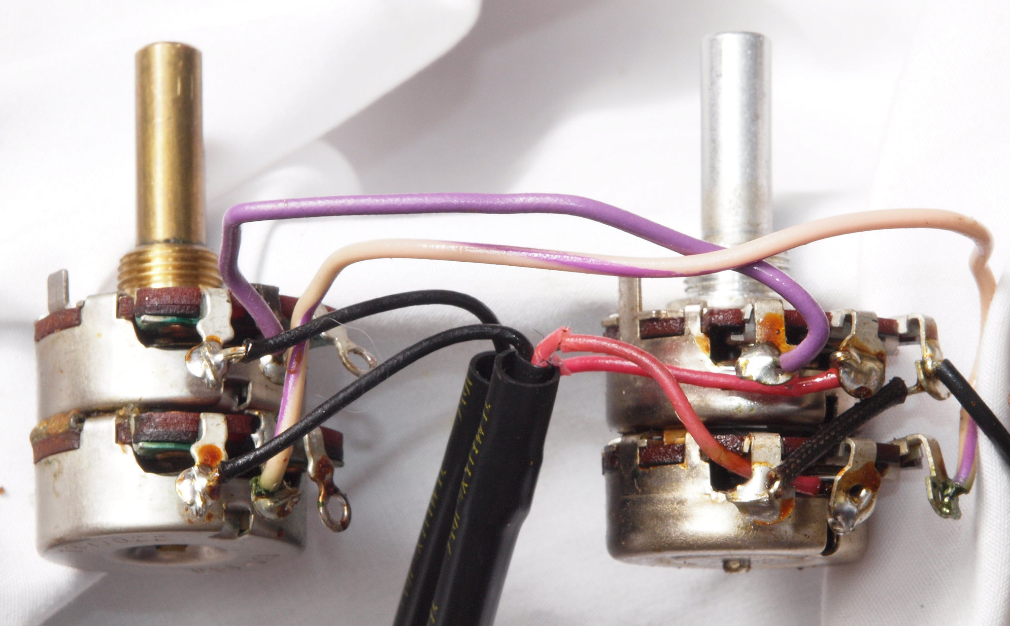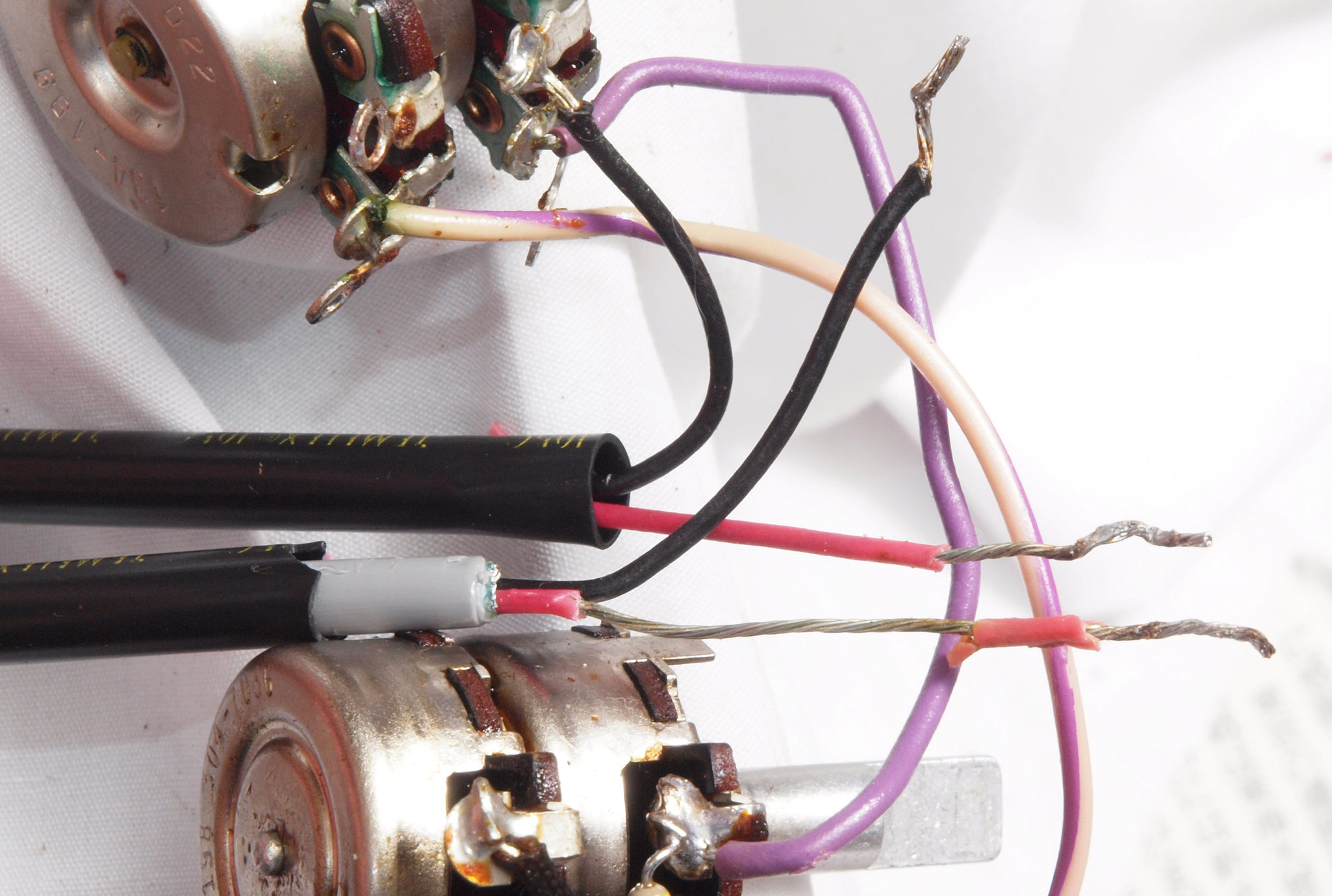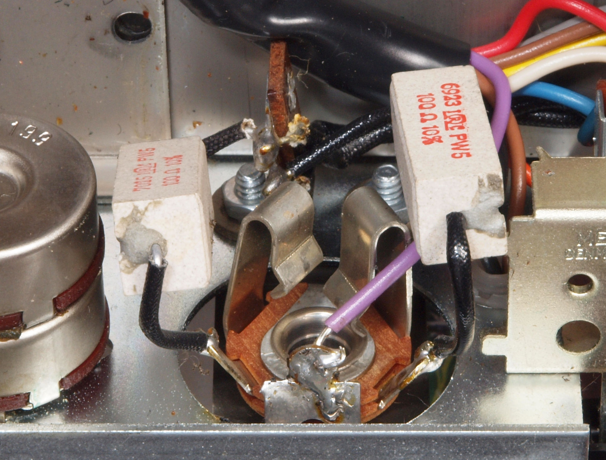 C63. 修理中 バランスVRの配線被覆が強力な接点復活材使用でボロボロ。