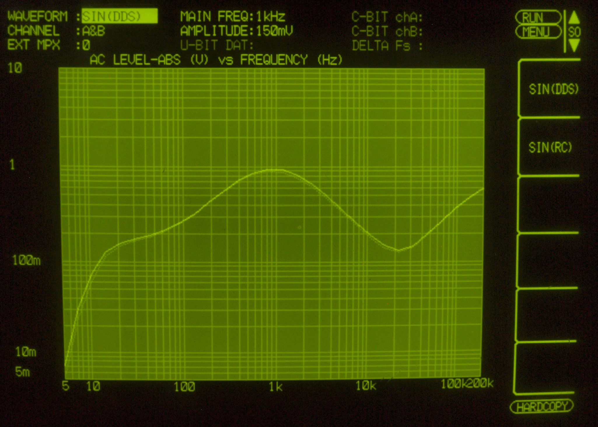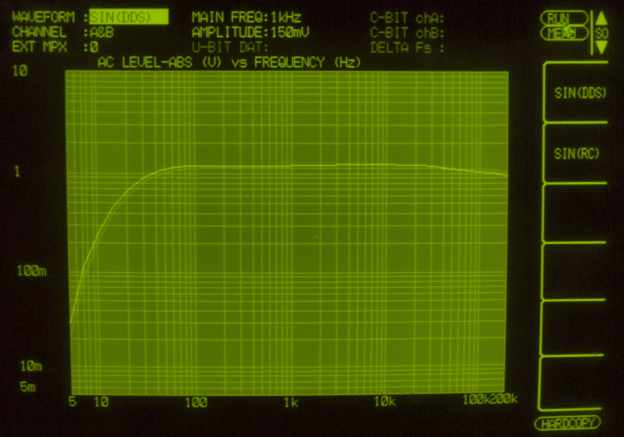 MM入力 入力電圧=2mV一定入力 VRはmax   左出力=薄(細い)色 右出力=濃い(太い)色