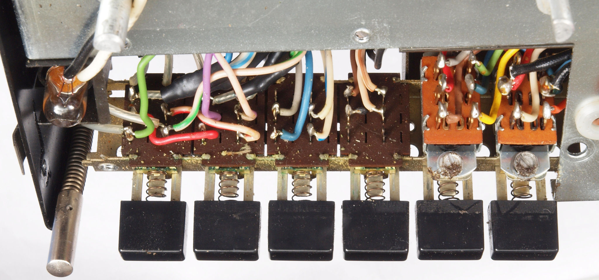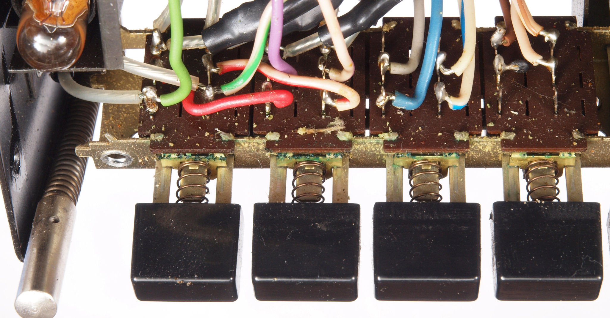 C92 修理中  プッシュSW。強力な接点復活材使用で緑青が発生。